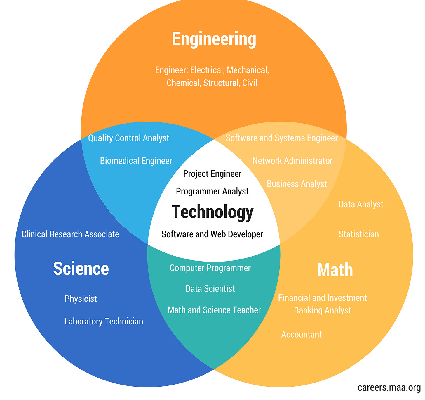 Recently, I have come to embrace my identity as an engineer, data analyst and computer scientist. I have accepted that I may not have as much expertise as someone who has spent their entire career in only one field but I believe my diverse career brings significant advantages to myself and my employer and I am ok with that. I have since changed my job title from “Engineering Analyst” back to “Technology Development Engineer” and from “Yield Analyst” to “Process Integration Engineer”. I have found that my engineering skills transferred so much more than I anticipated to data analytics in financial services and my analytic skills are transferring strongly to computer science. If I were on a STEM venn diagram, I would be in the center.